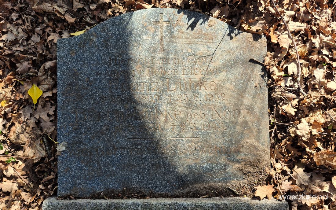 Na skraju lasu jest niewielkie wzgórze, cmentarz ewangelicki w Będziszewie znajduje się w jego południowo-wschodniej części. Wypatrzeć tutaj można między krzewami resztki steli i podstaw krzyży, lecz jeśli dokładniej spojrzy się pod nogi, to pośrodku dawnego cmentarza leży przewrócona stela, z której po odczyszczeniu odczytałam, że pochowano tutaj Franza Lübke, który zmarł w 1932 roku i Bertę Lübke, która zmarła w 1943 roku. Bliżej skraju lasu położone są dwie kolejne stele zachowane w bardzo dobrym stanie, pierwsza pamięci Friedericke Strahl zmarłej w 1920 roku, a druga dwóm osobom o nazwisku Schmeling, które zmarły w 1924 roku.