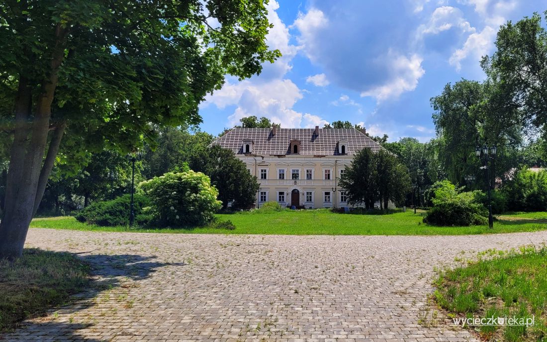 Zbudowany w latach 1689-1699 pałac w Konarzewie niedawno przeszedł gruntowny remont, po którym w 2023 roku doszło do pożaru. Uszkodzenia po gaszeniu były znaczne, lecz budynek w 2025 roku jest już nakryty na nowo dachem. Pałac łączy w sobie cechy dwóch styli, fasada od frontu i boczne mają cechy późnorenesansowe, a budowana nieco później fasada ogrodowa z ryzalitem ma cechy wczesnobarokowe. Od frontu uwagę przykuwa bogate zdobienie fasady, pod oknami są płyciny ze wpisanymi w nie centralnie rombami, ładny portal zwieńczony jest kamienną tablicą, którą trzymają dwa aniołki – jest na niej rok 1697, napis fundacyjny po łacinie i kartusz z herbem Kotwicz. Niestety od strony drogi nie widać dekoracyjnego ryzalitu z tyłu, a muszę przyznać, że wygląd pałacu od ogrodu jest uroczy, wyjście jest po schodkach, nad nim jest niewielki balkon. Wnętrza zachowały się w dobrym stanie, można w nich podziwiać oryginalne sztukaterie i polichromie, które odkryto i przywrócono podczas renowacji w latach 90.