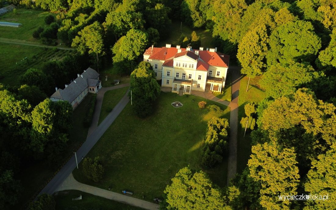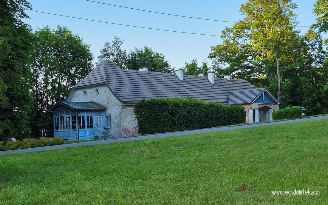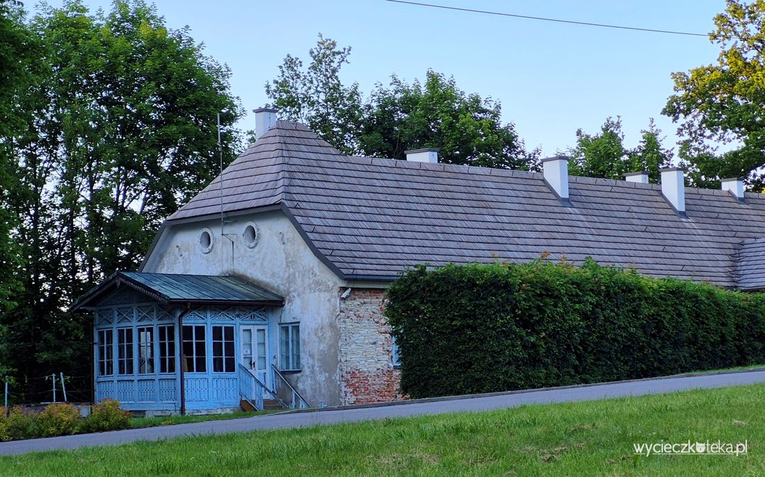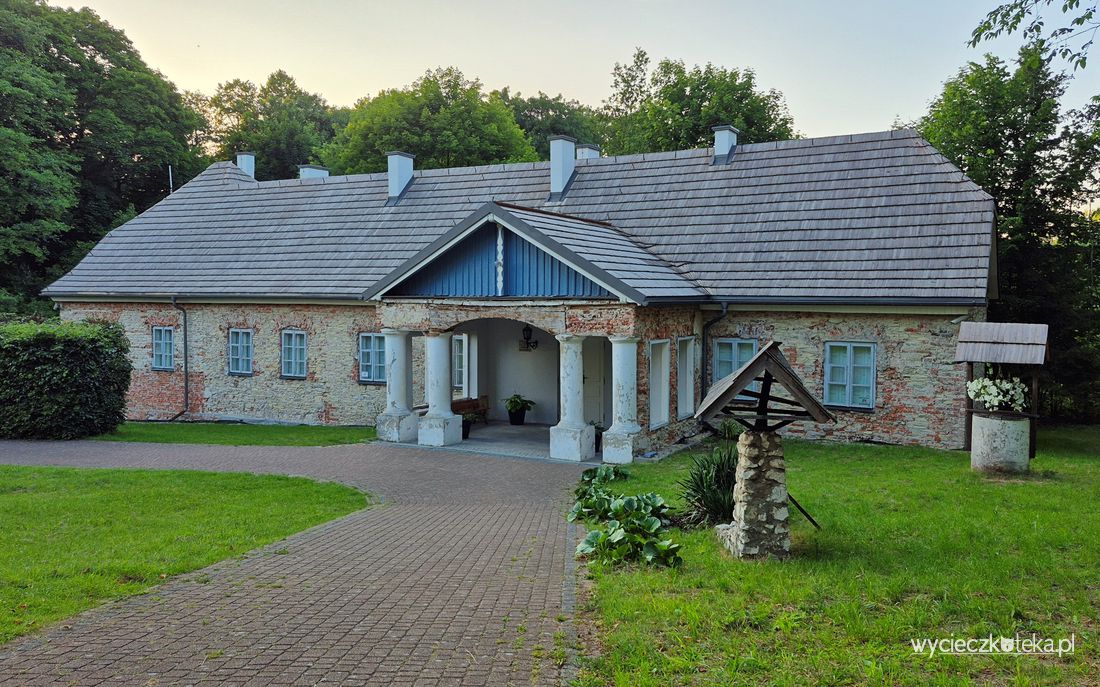 Po lewej stronie od głównej alei, a tym samym od pałacu Raczyńskich stoi parterowy dworek Krasińskiego, w jego wnętrzu mieści się Muzeum Regionalne im. Zygmunta Krasińskiego. Budynek zbudowany został w 1829 roku przez Stanisława Leskiego w stylu klasycystycznym. Ładnym elementem budowli jest ganek wsparty na dwóch toskańskich kolumnach. Od zachodu zaskoczyła mnie wizualnie niewielka weranda, zupełnie niepasująca stylem do budynku, dostawili ją Raczyńscy. W znajdującym się tutaj muzeum można obejrzeć pierwsze wydania niektórych dzieł Zygmunta Krasińskiego, portrety rodziny Krasińskich, popiersia i meble. Na uwagę zasługuje tutaj pięknie zdobiony piec kaflowy przeniesiony z dworu w Moskorzewie.