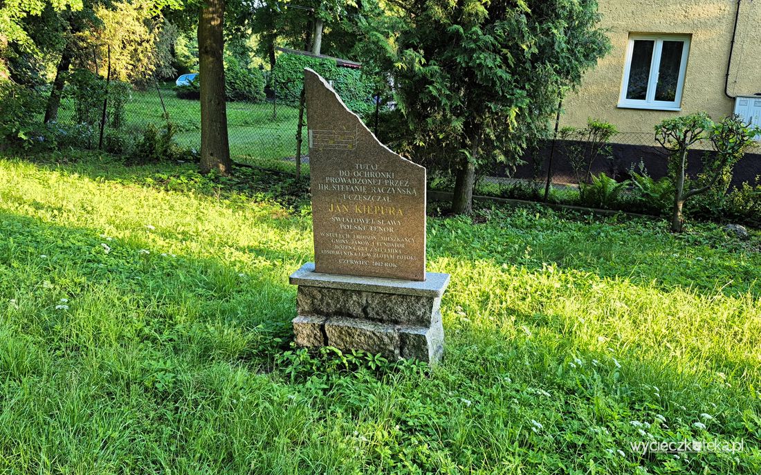 Przy wejściu na teren zespołu pałacowo-parkowego w Złotym Potoku wypatrzyłam pomnik pamięci Jana Kiepury – światowej sławy tenora. Na początku XX wieku hrabina Stefania Raczyńska otwarła w majątku ochronkę dla dzieci, do której uczęszczał wówczas 4-letni Jan.