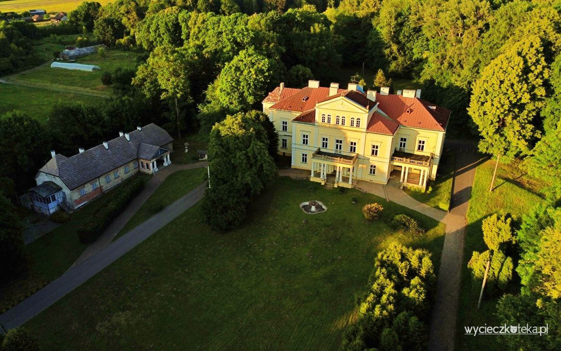- Samochód można zaparkować na drodze przechodzącej przez środek dawnego folwarku, naprzeciw bramy pałacu Raczyńskich w Złotym Potoku: 50.714653, 19.434963.