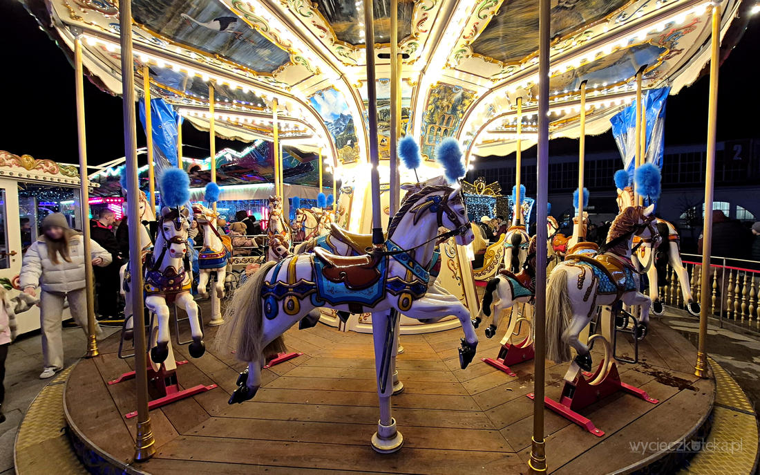 Atrakcje na poznańskich jarmarkach bożonarodzeniowych nigdy nie zawodzą, jest ich naprawdę sporo i myślę, że każdy znajdzie coś dla siebie. Jedną z fajniejszych jest młyńskie koło, które można znaleźć na Jarmarku Świątecznym na Targach i na Poznańskim Betlejem na Placu Wolności. Ja skorzystałam dotychczas z tego na MTP i jestem bardzo pozytywnie zaskoczona, w weekend polecam wybrać się ok. godz. 19:00-20:00, prawie nie ma kolejki, cena za osobę dorosłą w 2025 roku wynosił 30 pln. Widok na jarmark bożonarodzeniowy w Poznaniu jest genialny, można też pozachwycać się podświetleniem pawilonów i hal, z góry widać także miasto.