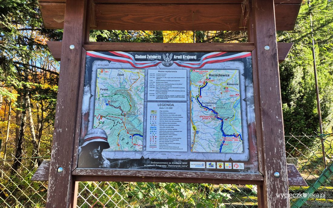 - Pomnik oddziału AK „Śmiały” znajdziesz w pobliżu niebieskiego szlaku na Grodzisko, w pobliżu domów: 49.821445, 20.142110.