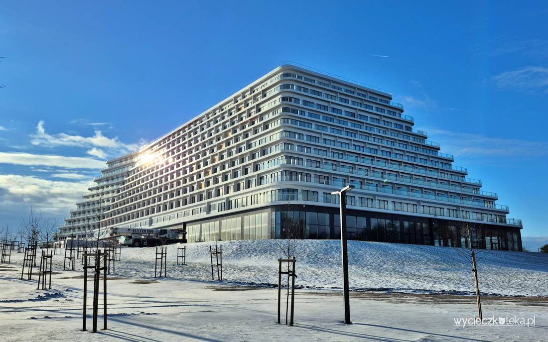 Wyglądający jak gigantyczny statek pasażerski Hotel Gołębiewski w Pobierowie ma 13 kondygnacji, z czego 11 znalazło się nad ziemią, a 2 poniżej gruntu. Aż 80 procent pokoi ma mieć widok na Bałtyk. Przyznam się, że chciałabym zobaczyć panoramę z najwyższej kondygnacji. Poza tym będzie tu sala kongresowa na 4 tysiące osób i aż 16 sal konferencyjnych. Zadbano również o rozrywkę, ma być dostępne SPA, restauracja, pub, kawiarnia, będą też sale teatralno-kinowe. Urządzono tu także aquapark z basenami zewnętrznymi. A to jeszcze nie wszystko, bo mają tu być także ścianki wspinaczkowe, boiska do koszykówki i siatkówki, a także korty tenisowe. Czy komuś będzie się chciało stąd wychodzić? Mnie nie chciałoby się opuszczać terenu, lecz pewnie taki był zamysł Tadeusza Gołębiewskiego.