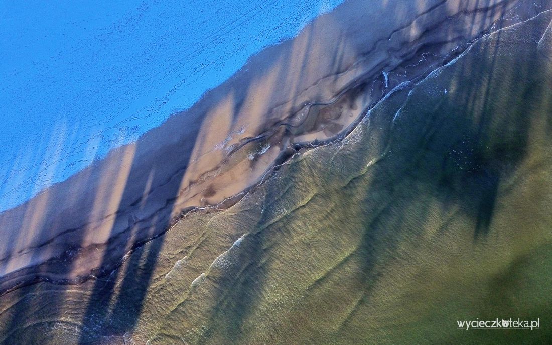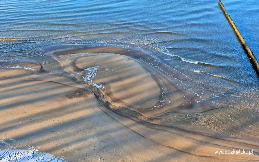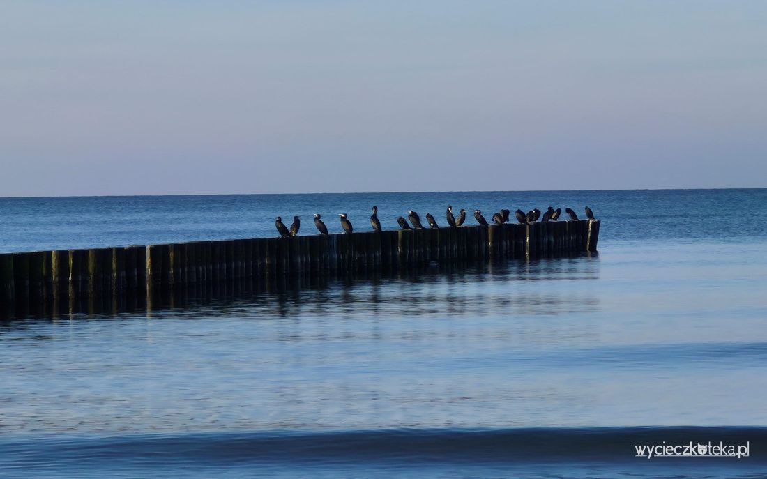 Po obejrzeniu tarasu widokowego z pomnikiem syrenki i ruinami kościoła warto zejść schodami w platformie widokowej na plażę, aby podziwiać klif z dołu, przejść się na spacer albo poleżeć na plaży jak foka. Woda jest tutaj płytka, na ostrogach brzegowych przesiadują chmarami ptaki, w zimie obserwowałam tutaj kormorany. Plażę ogranicza wysokie urwisko, to klif w Trzęsaczu, który powstał w wyniku procesów erozji, tzw. abrazji, czyli w najprostszym skrócie, ścieraniu podłoża skalnego przez fale i wiatr, które działają tutaj od stuleci. W wyniku ich niszczycielskiej siły Bałtyk pożarł tu spory kawałek wybrzeża, doprowadzając do kilku katastrof budowlanych, jedna ściana kościoła jest dowodem na to, jak groźna potrafi być przyroda.