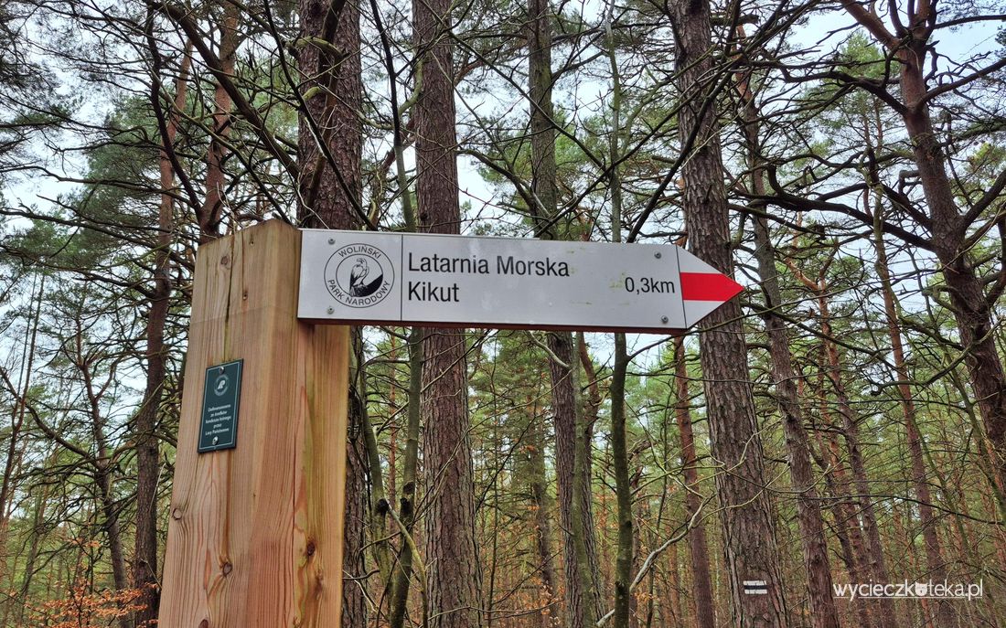 Przez wzgórze Kikut, na którym stoi latarnia morska w Wolińskim Parku Narodowym przebiega czerwony szlak turystyczny, można na niego wejść w Wisełce od strony ul. Nadmorskiej albo Kołczewie, jednak ja polecam rozpocząć spacer na końcu ul. Obrońców Westerplatte, gdzie na poboczu jest miejsce na pozostawienie samochodu i podążyć czarnym szlakiem do skrzyżowania z czerwonym. Auto można też zaparkować wcześniej, przy Jeziorze Zatorek, wydłuży to spacer w jedną stronę o około 12 minut. Poprowadzona jest tutaj urokliwa ścieżka przez las. Po około 10 minutach dojdziesz do skrzyżowania szlaków, dalej w prawo pod górę. Na końcowym odcinku do latarni morskiej Kikut są schody.