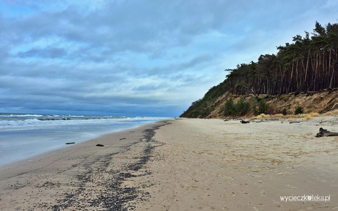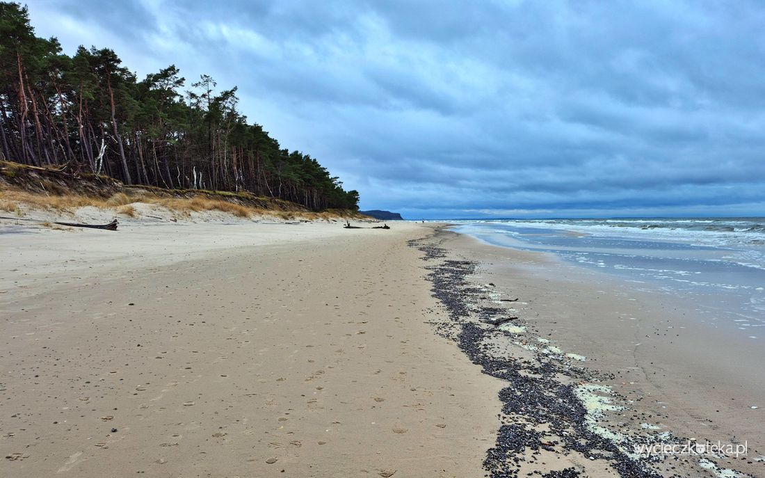 Po obejrzeniu budowli można wrócić do auta, ale ja polecam wrócić do czarnego szlaku i podążyć nim do zejścia na plażę, jest naprawdę urocze. A później pospacerować wzdłuż linii brzegowej, ja poszłam do punktu oznaczonego na mapie jako Cmentarzysko Wielorybów i wróciłam kolejnym zejściem na plażę, tym razem czarnym szlakiem w stronę centrum Wisełki, następnie czerwonym w lewo do skrzyżowania pod latarnią morską i na parking. Cały spacer zajął mi około 2 godziny.