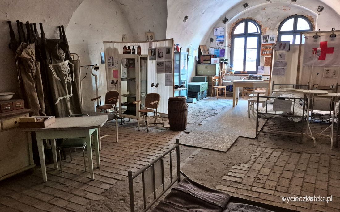 W jednym z pomieszczeń można zobaczyć, jak mógł wyglądać taki lazaret, warunki z pewnością nie pomagały psychice chorych, lecz może chociaż leczenie było skuteczne. Są tu też łóżka piętrowe, obrazujące, jak mogło wyglądać życie senne w takich koszarach. Jednak wystawa nie skupia się jedynie na życiu żołnierzy na przełomie wieków, są tu też eksponaty z okresu I i II wojny światowej. Można obejrzeć m.in. filtrowentylator, urządzenie znane mi już z krakowskiej Nowej Huty, gdzie w schronach zamontowane były takie cuda techniki. Tutejszy filtrowentylator nie był na wyposażeniu fortu VI, znaleziony został w schronie gazoszczelnym na terenie dawnej zajezdni przy ulicy Zwierzynieckiej (Gajowej) w Poznaniu. Pochodzi on z czasów II wojny światowej. Ciekawa jest też wystawa poświęcona rozwojowi sztuki militarnej na przestrzeni wieków oraz makieta kolejowa. Jednak nie będę zdradzała wszystkiego, bo co to za wycieczka, gdy nie ma niespodzianek?