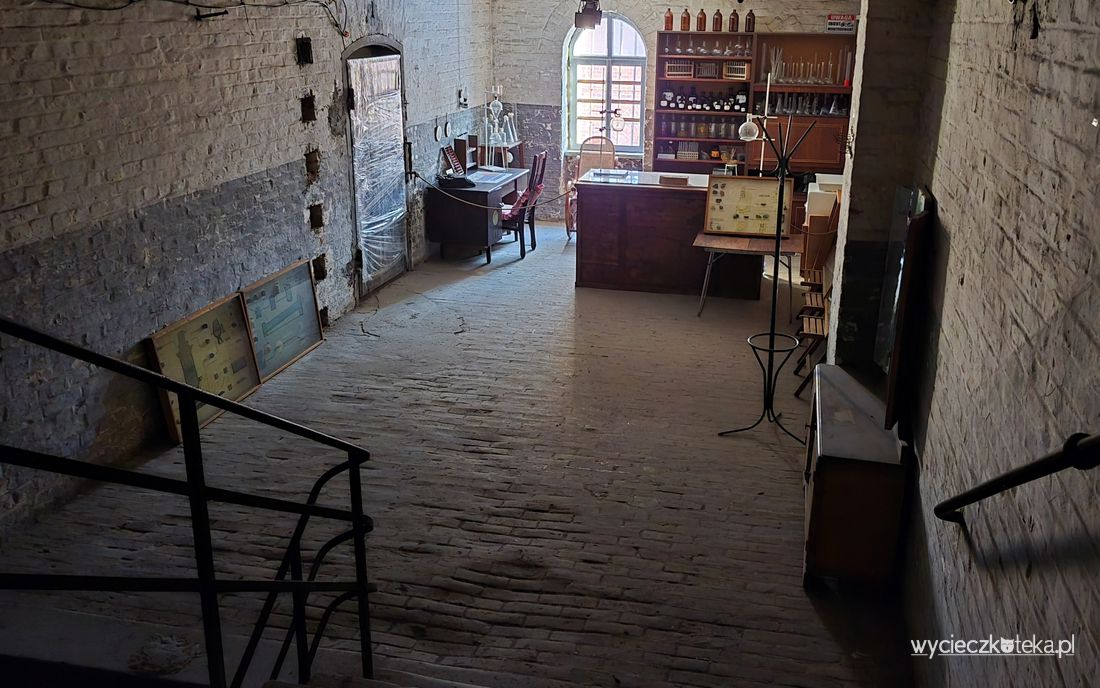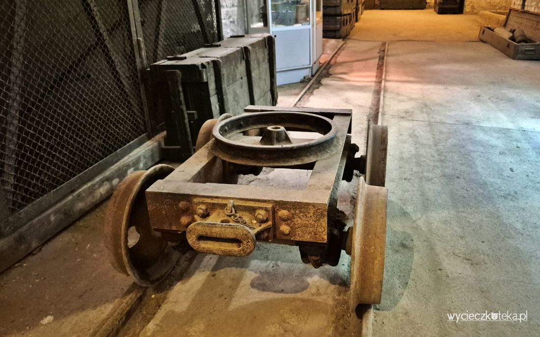 Ciekawostka: Jest tutaj niewielki wózek na torach. To unikatowe rozwiązanie. Tory kolejki wąskotorowej rozprowadzone były po całym obiekcie, po nich odbywał się cały transport wewnętrzny i częściowo zewnętrzny, gdyż wychodzą one poza obręb murów, do głównych magazynów w mieście.