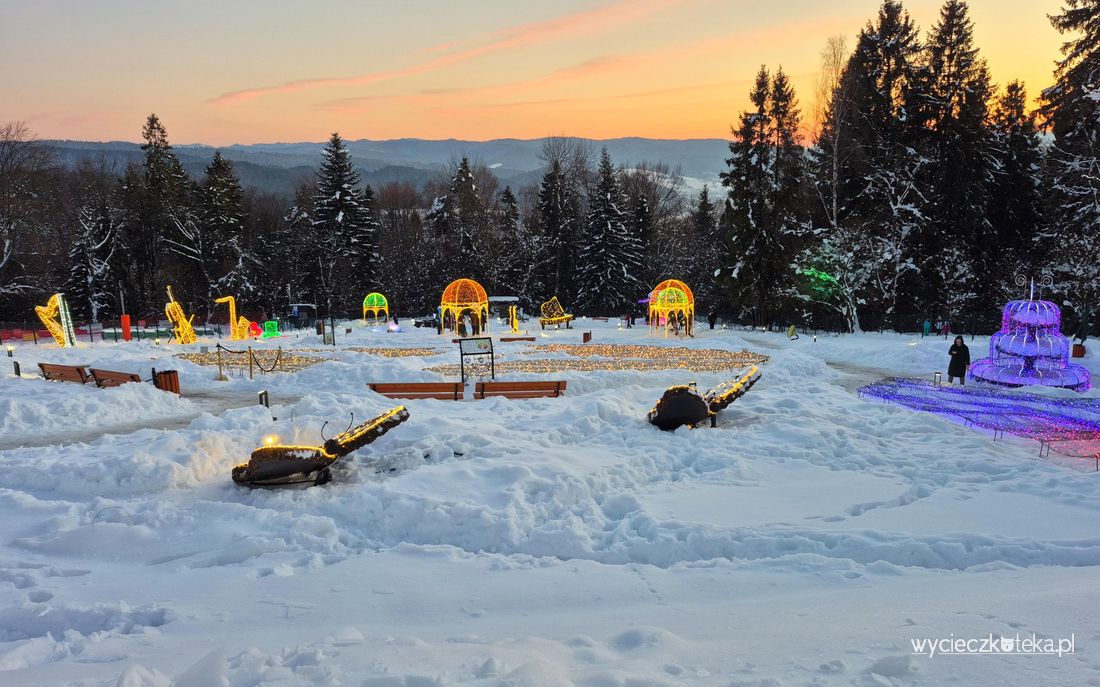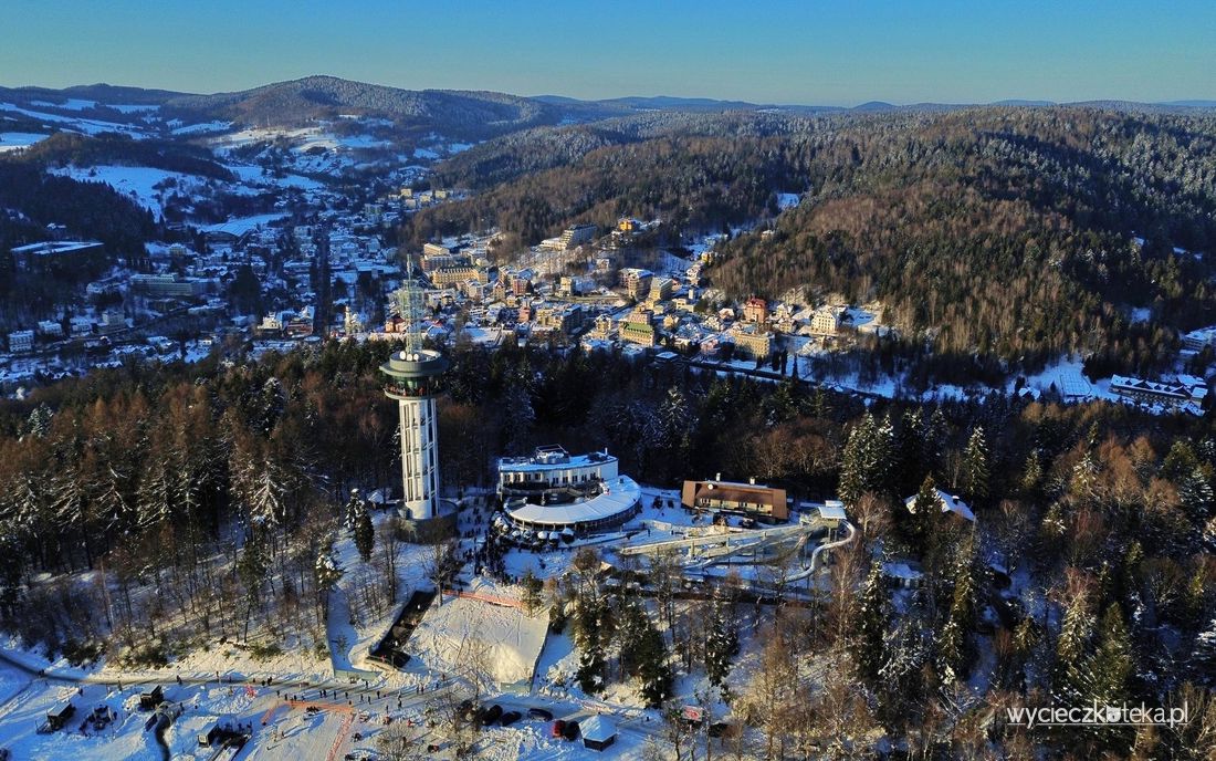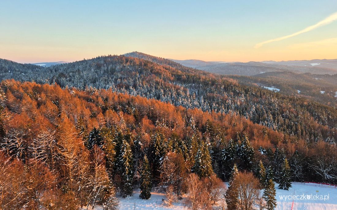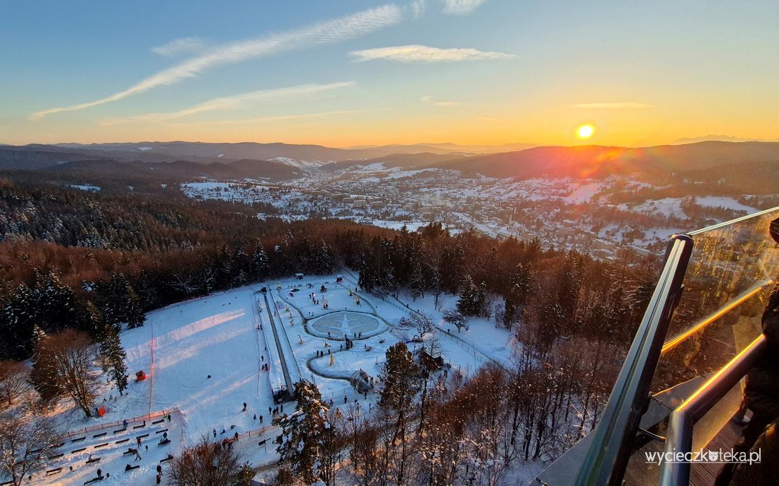 Góra Parkowa w Krynicy-Zdrój mierzy 742 metry wysokości. Najprostszym sposobem dostania się na jej szczyt jest wjazd koleją linowo-terenową PKL Góra Parkowa, lecz można także wybrać się tutaj którąś z licznych ścieżek spacerowych. W styczniu 2026 roku otwarta została tutaj nowa wieża widokowa, z której roztaczają się piękne widoki na Beskidy i Tatry. Zobacz jak tutaj pięknie!