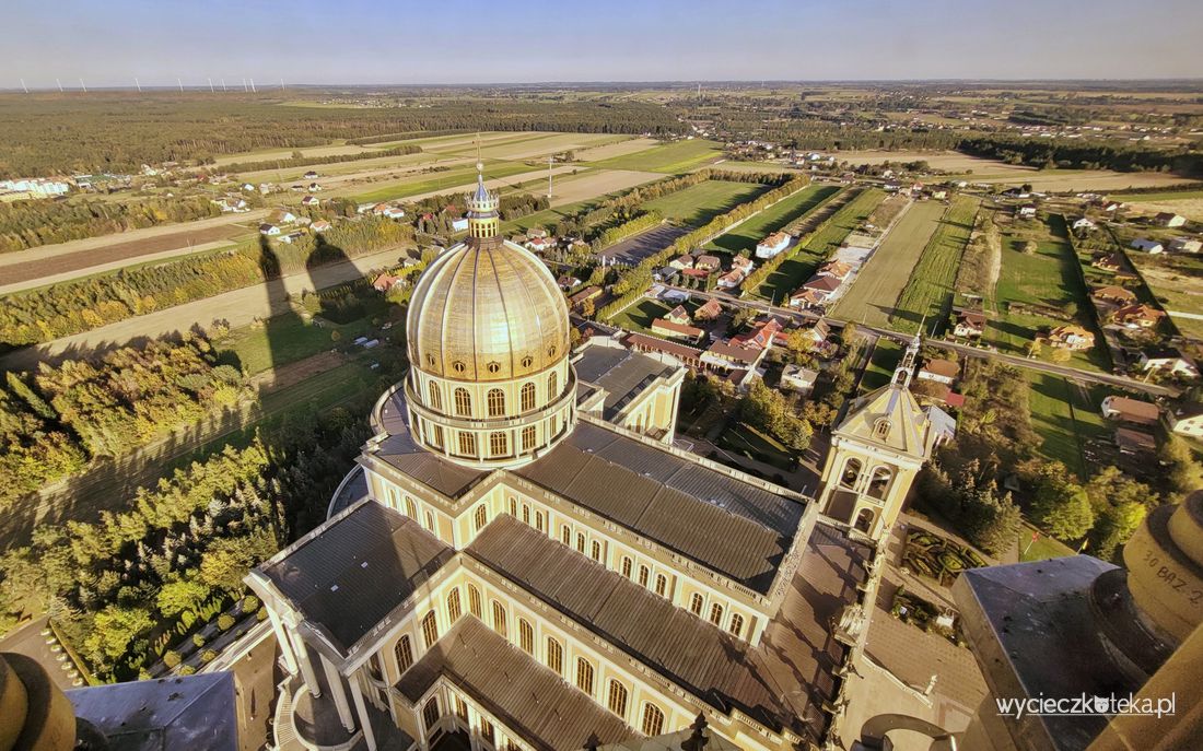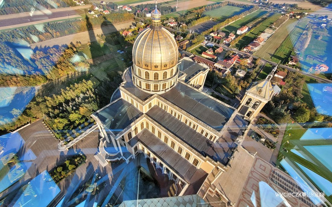 Największy kościół w Polsce jest budynkiem, obok którego ciężko przejść obojętnie, złotą kopułę widać z daleka, szczególnie oszałamia w słoneczne dni, gdy odbija promienie słońca. Ponad wszystkim góruje wieża widokowa, z której można zobaczyć nie tylko teren sanktuarium, lecz także otaczające go pojezierze.